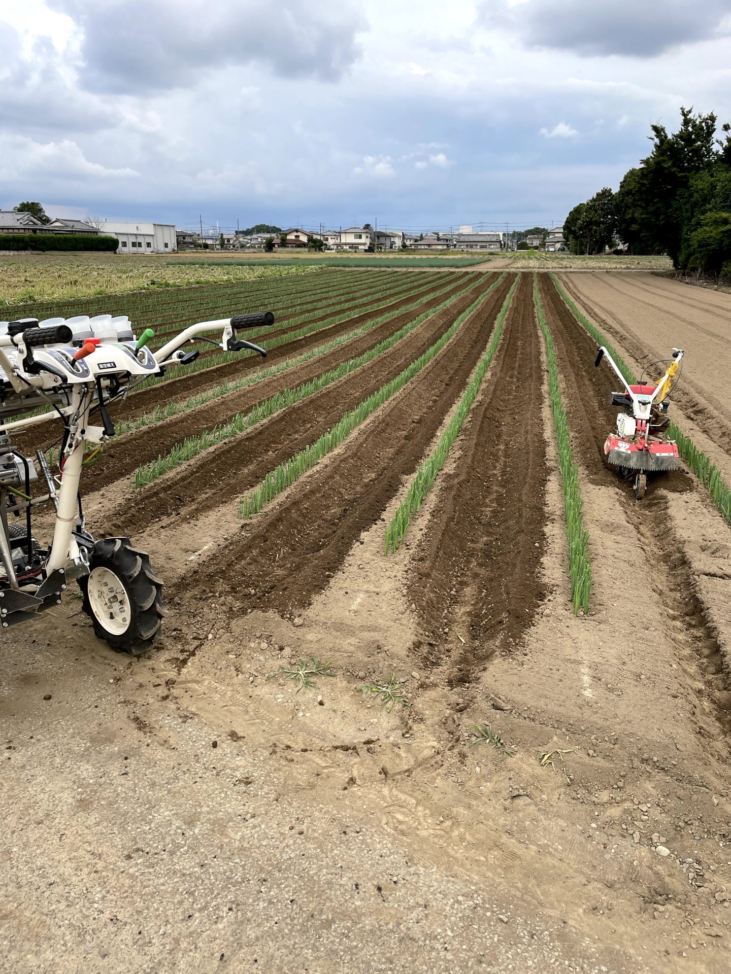 クチバシを開きながら畑に差し込みねぎを置いていきます。